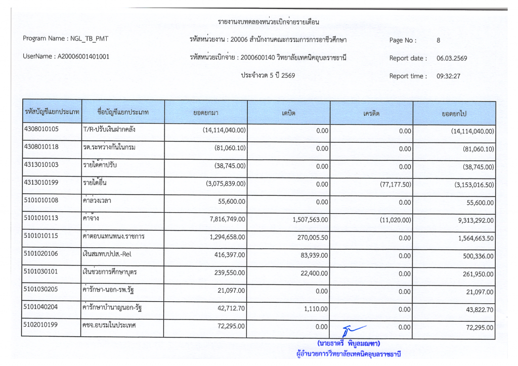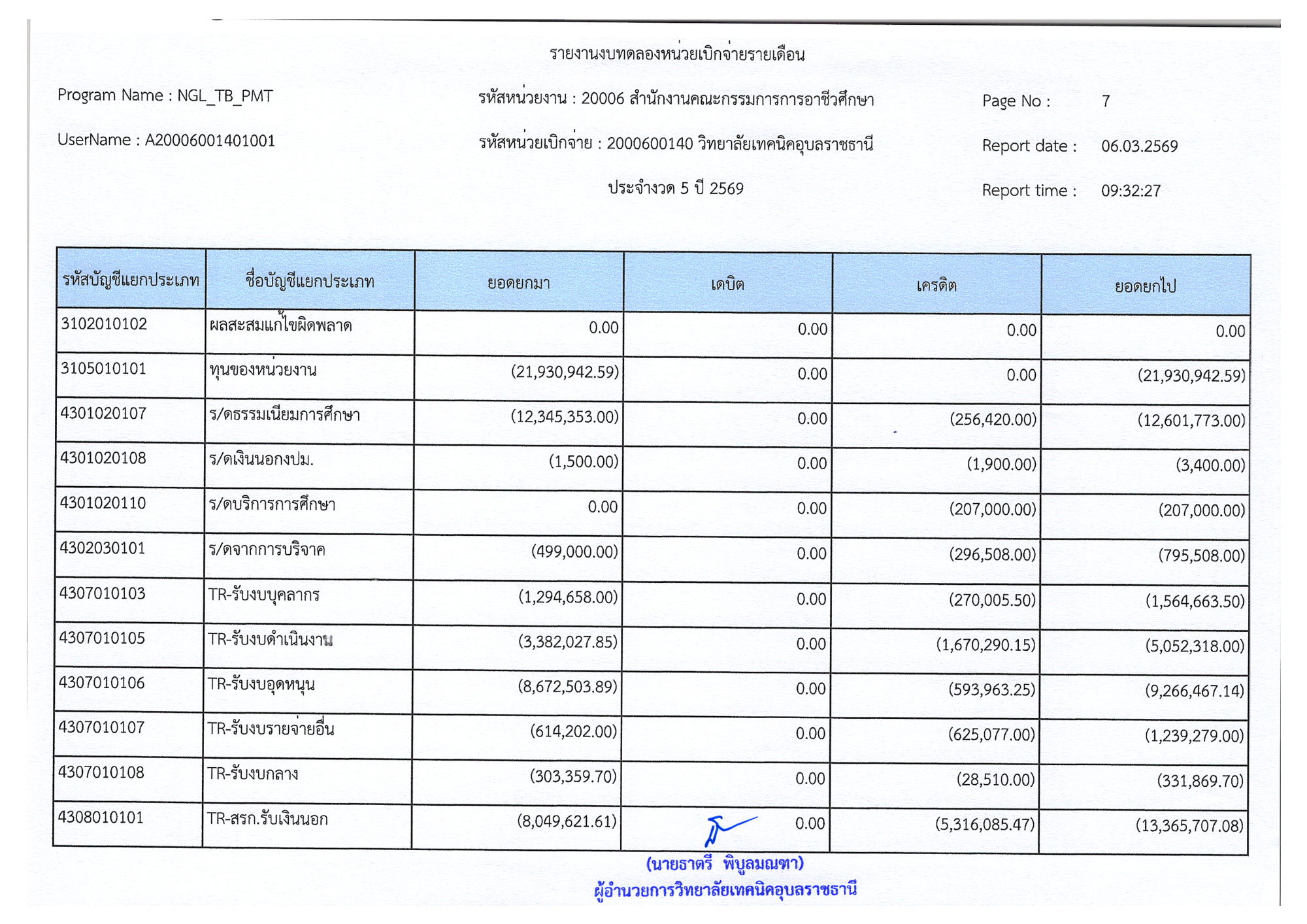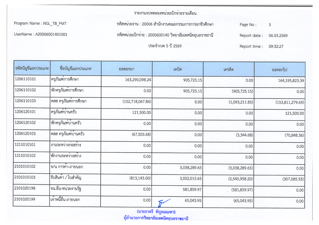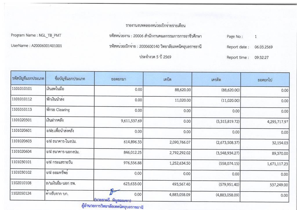 รายงานงบทดลองประจำเดือน มกราคม 2569