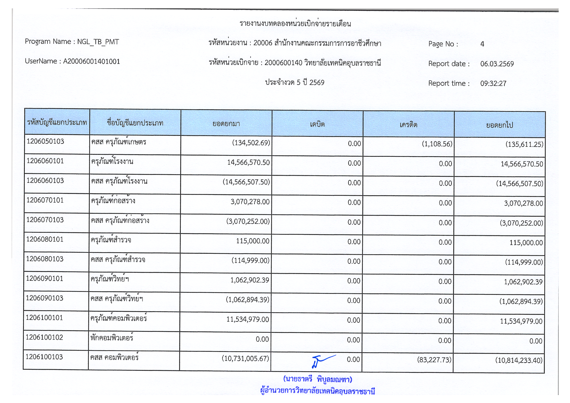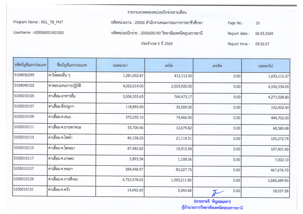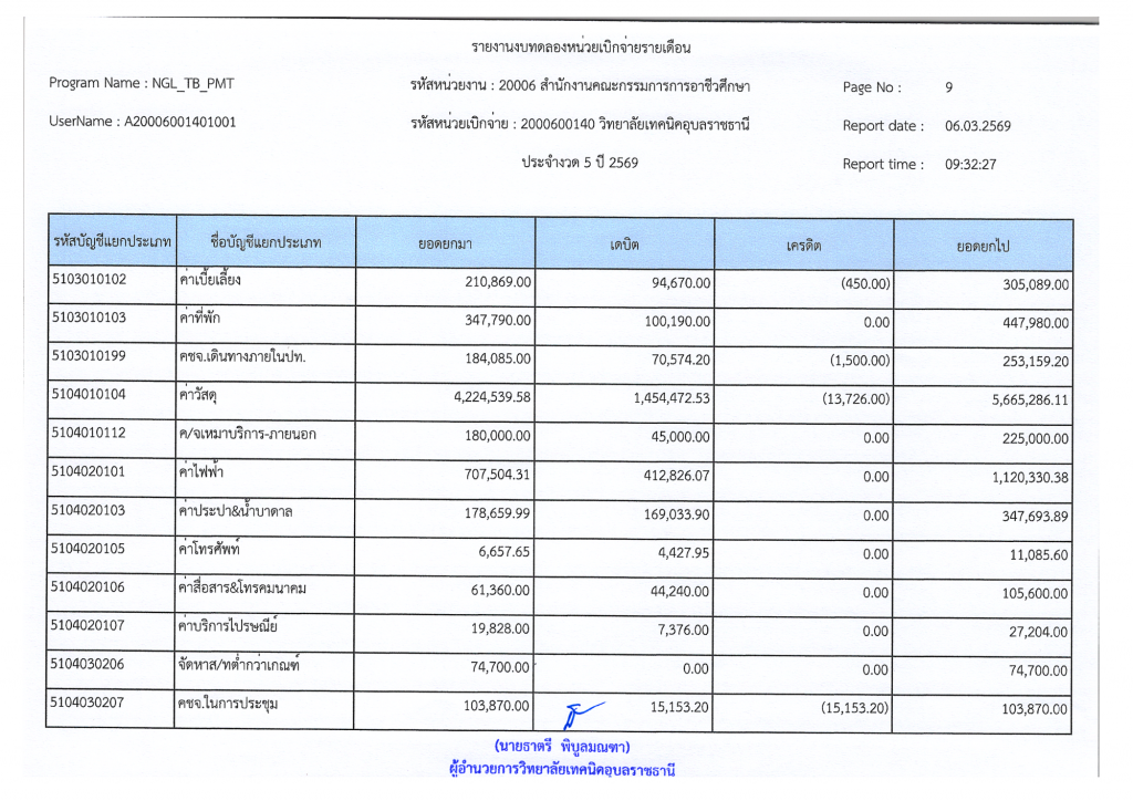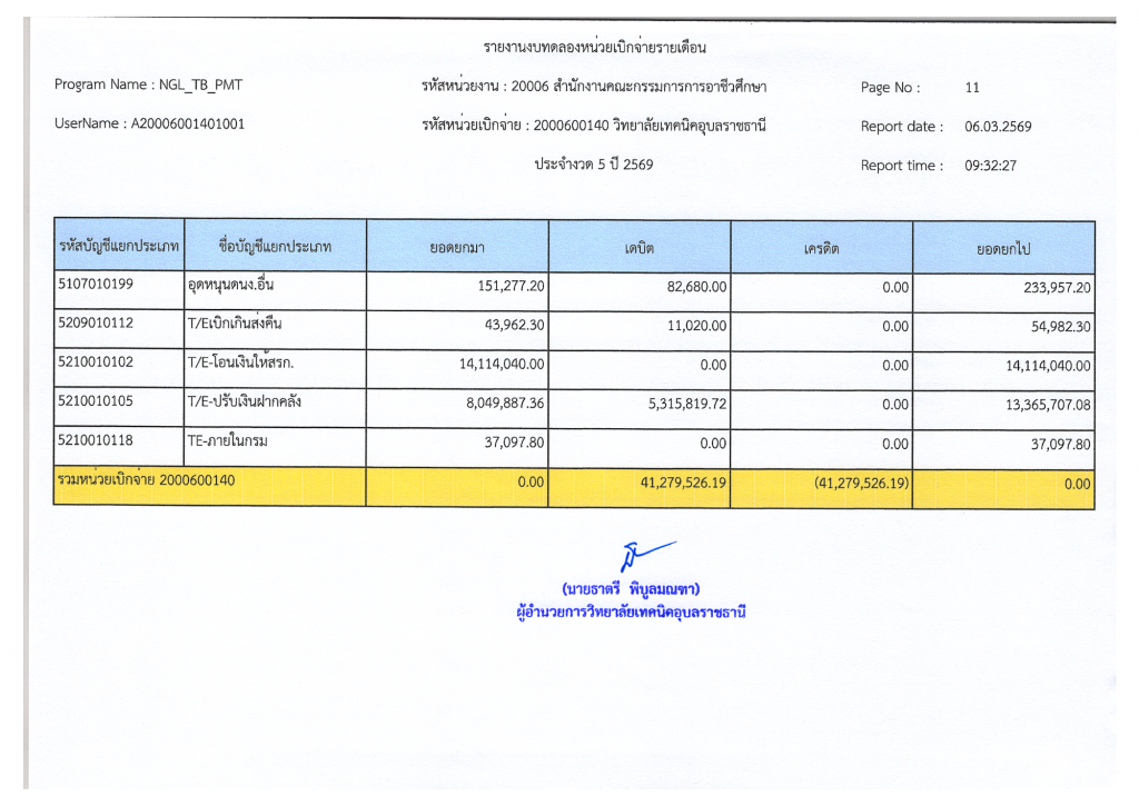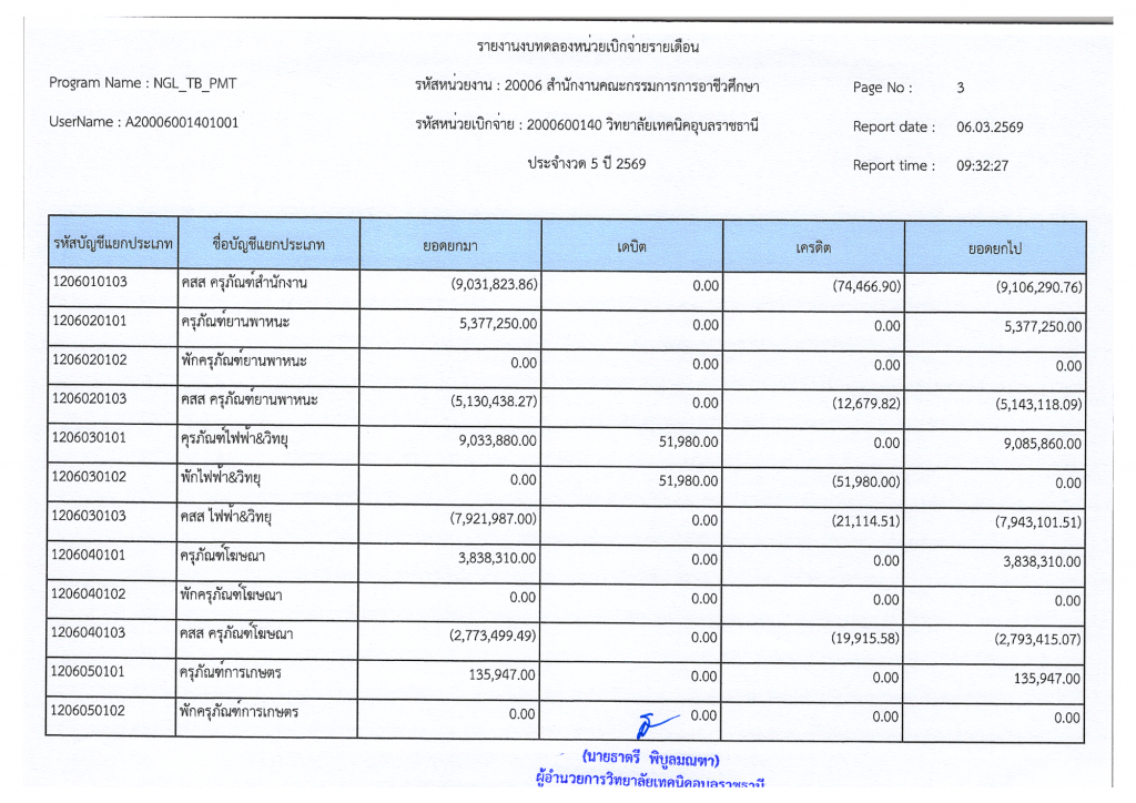 รายงานงบทดลองประจำเดือน มกราคม 2569