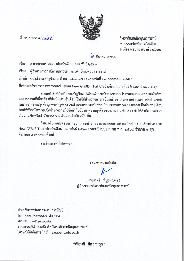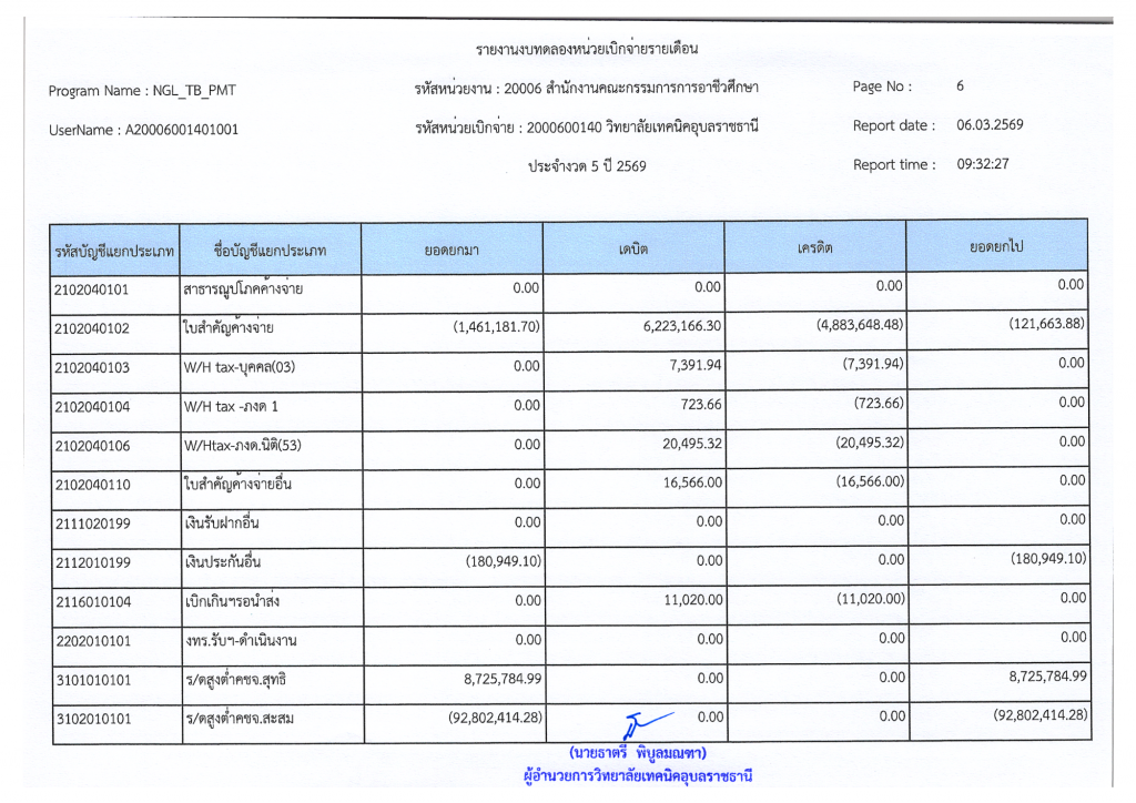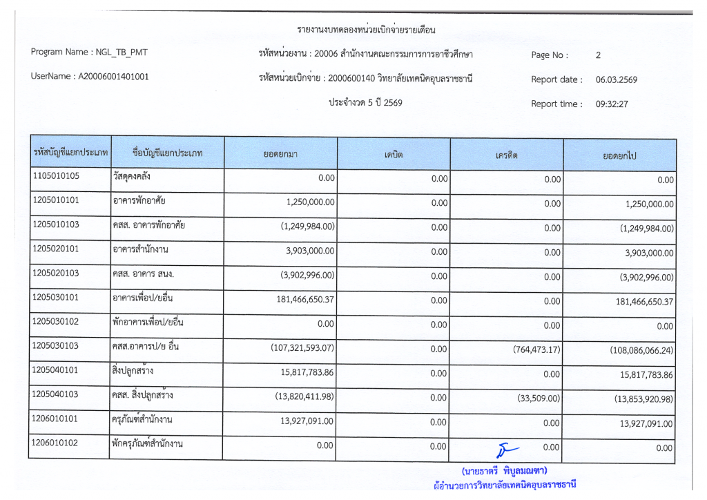 รายงานงบทดลองประจำเดือน กุมภาพันธ์ 2569
