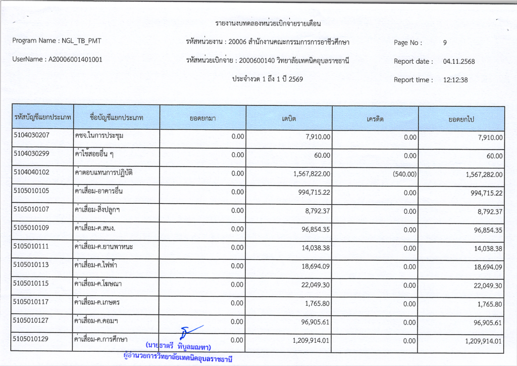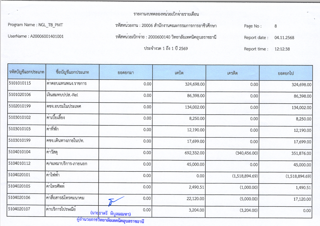 รายละเอียดประกอบรายการบัญชีที่สำคัญของงบทดลอง วิทยาลัยเทคนิคอุบลราชธานี ณ วันที่ 30 กันยายน 2568