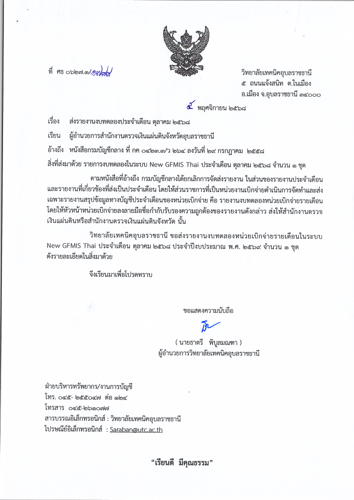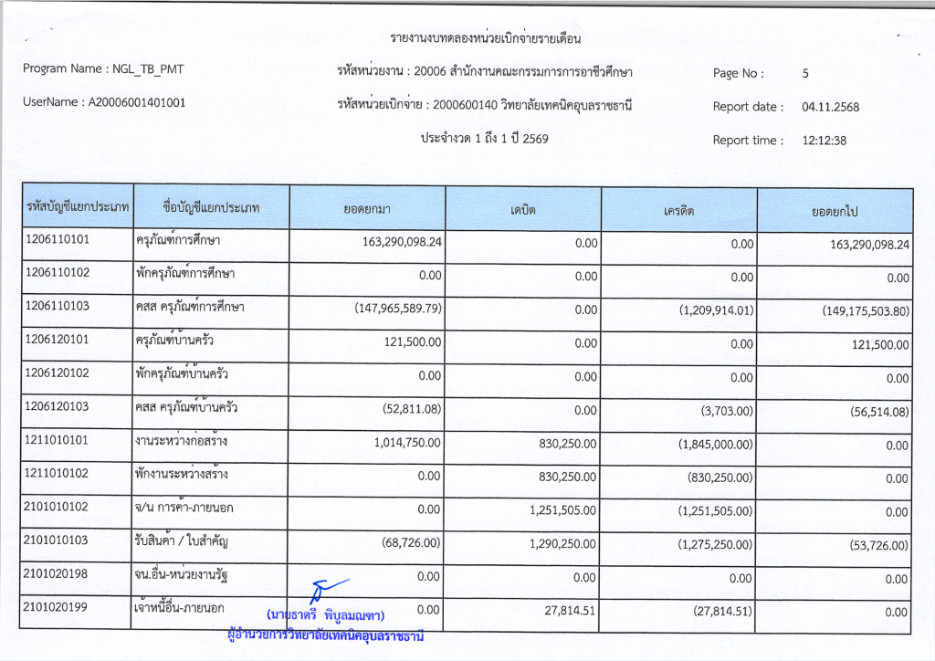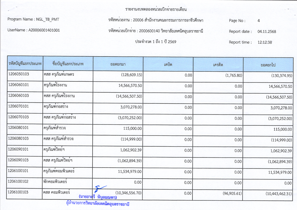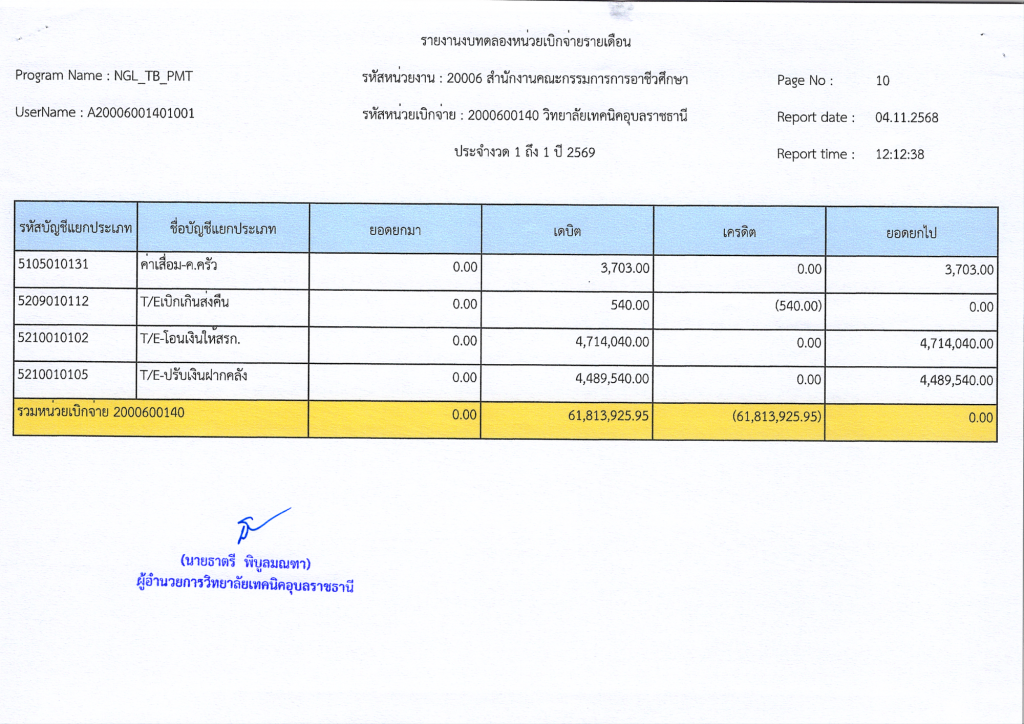 รายงานงบทดลองประจำเดือน ตุลาคม 2568