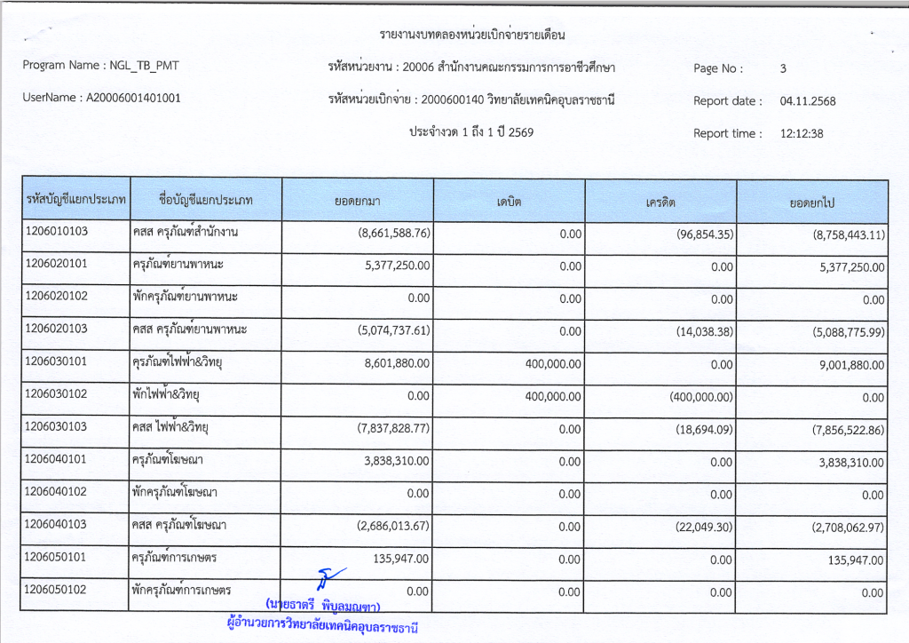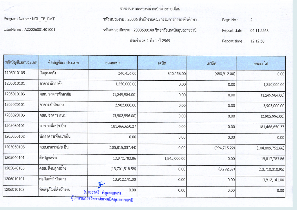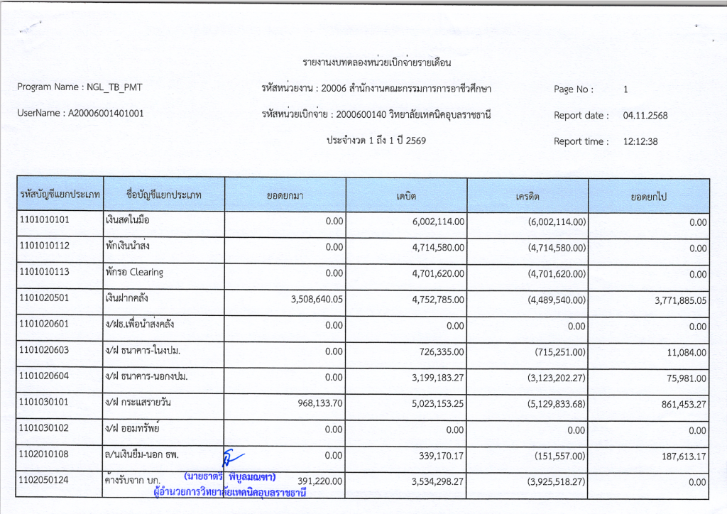 รายงานงบทดลองประจำเดือน พฤศจิกายน 2568