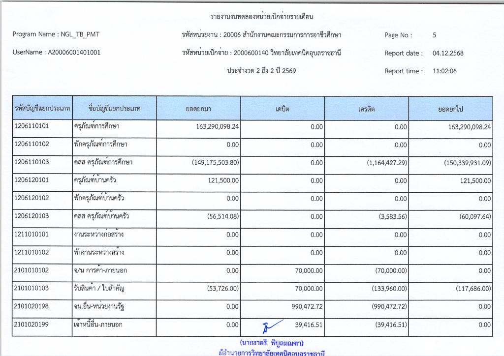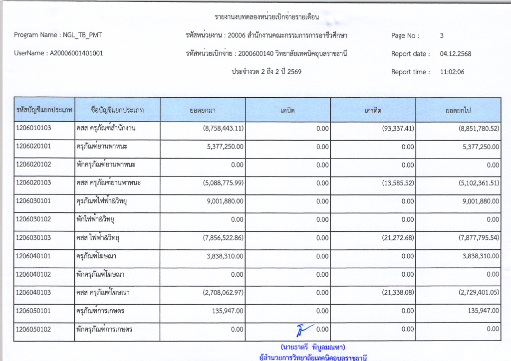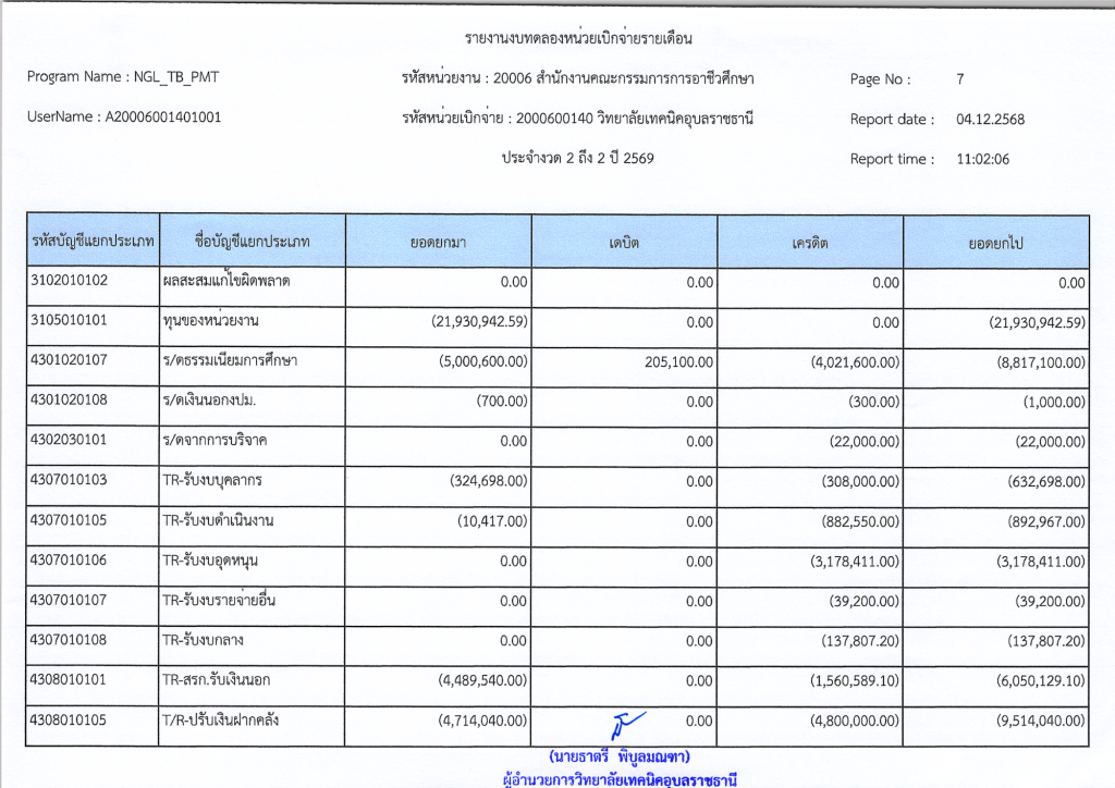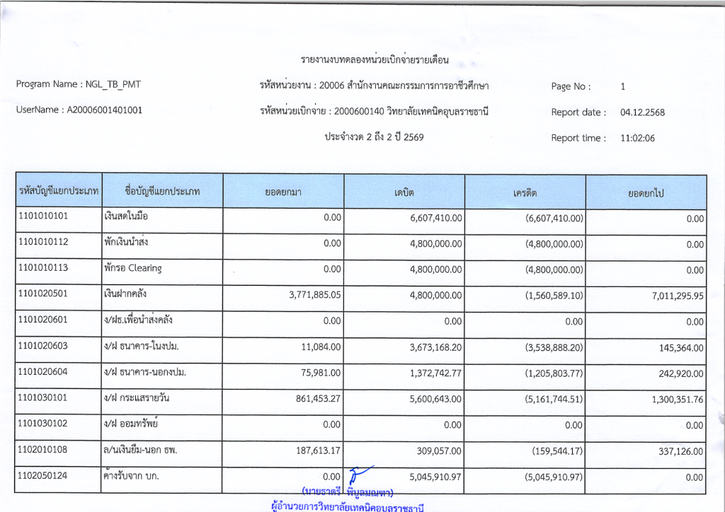 รายงานงบทดลองประจำเดือน พฤศจิกายน 2568