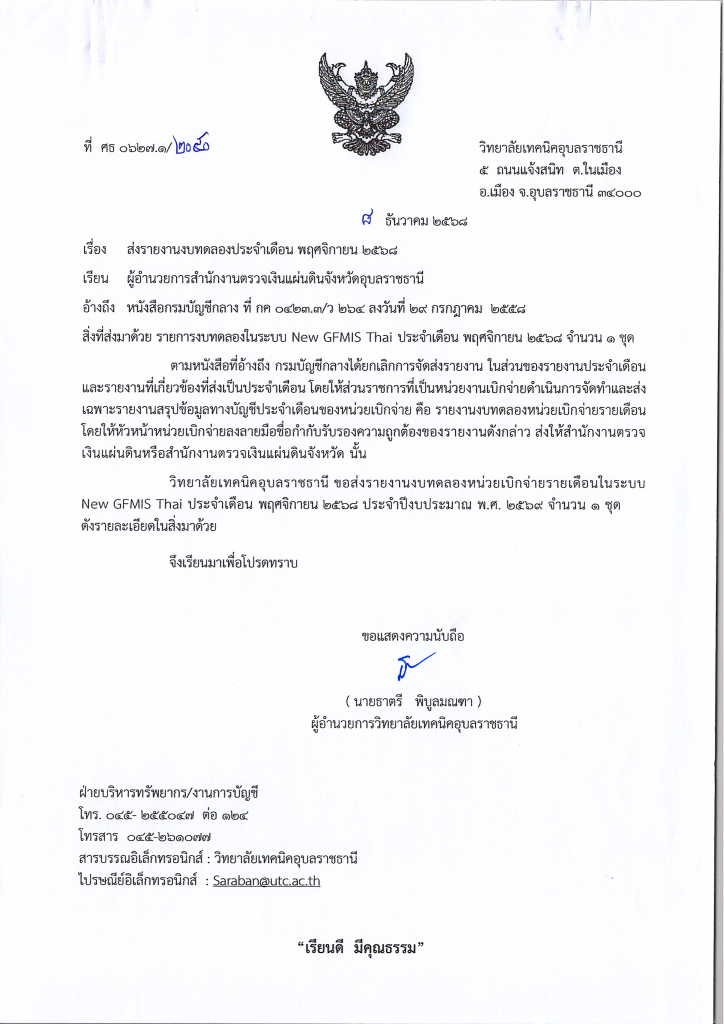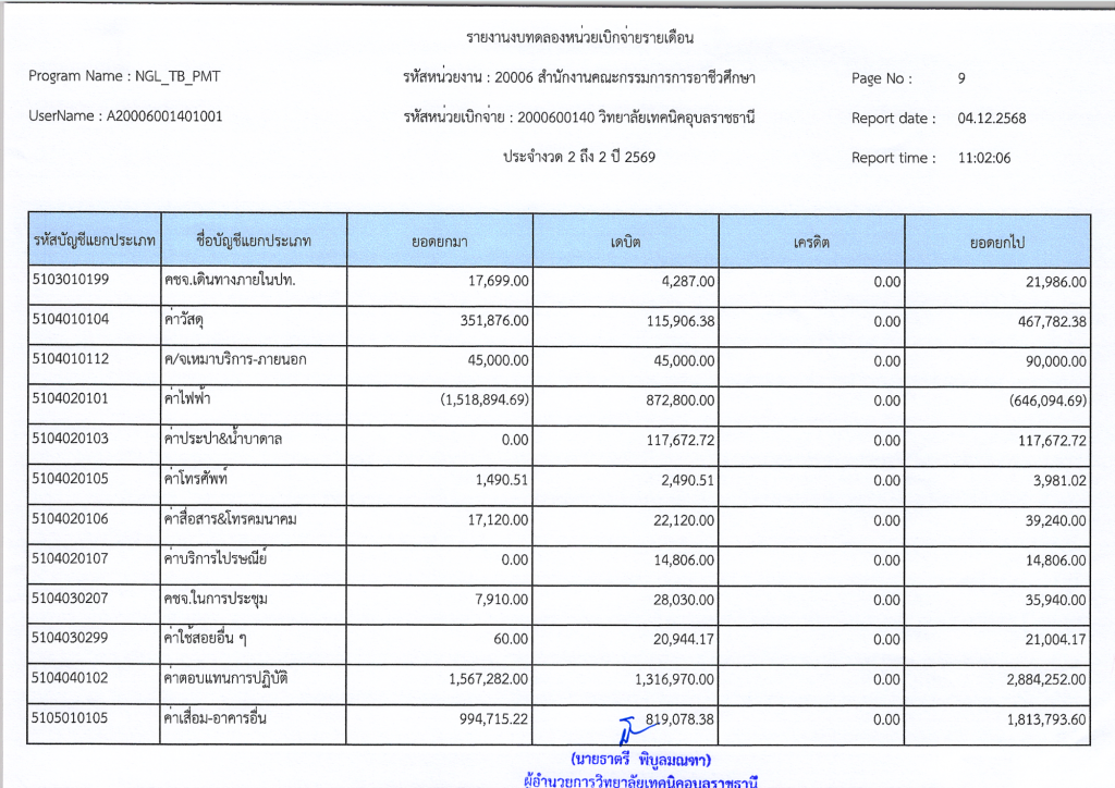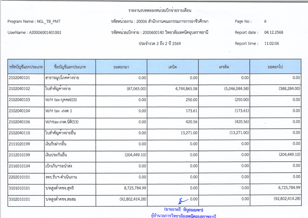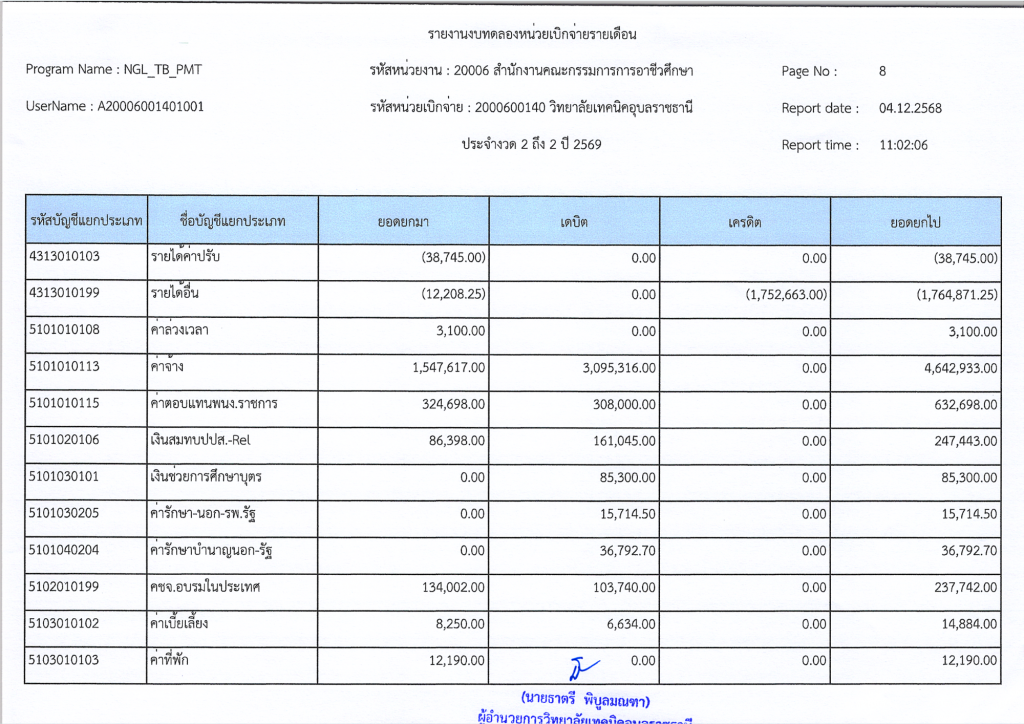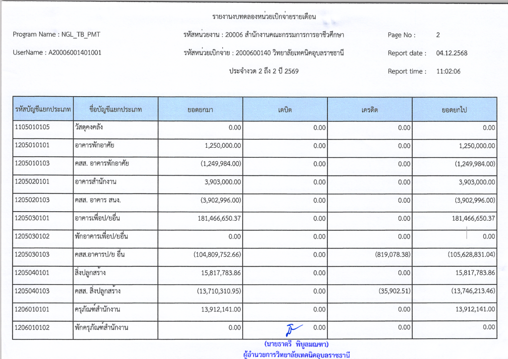 รายงานงบทดลองประจำเดือน พฤศจิกายน 2568