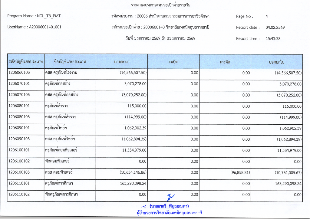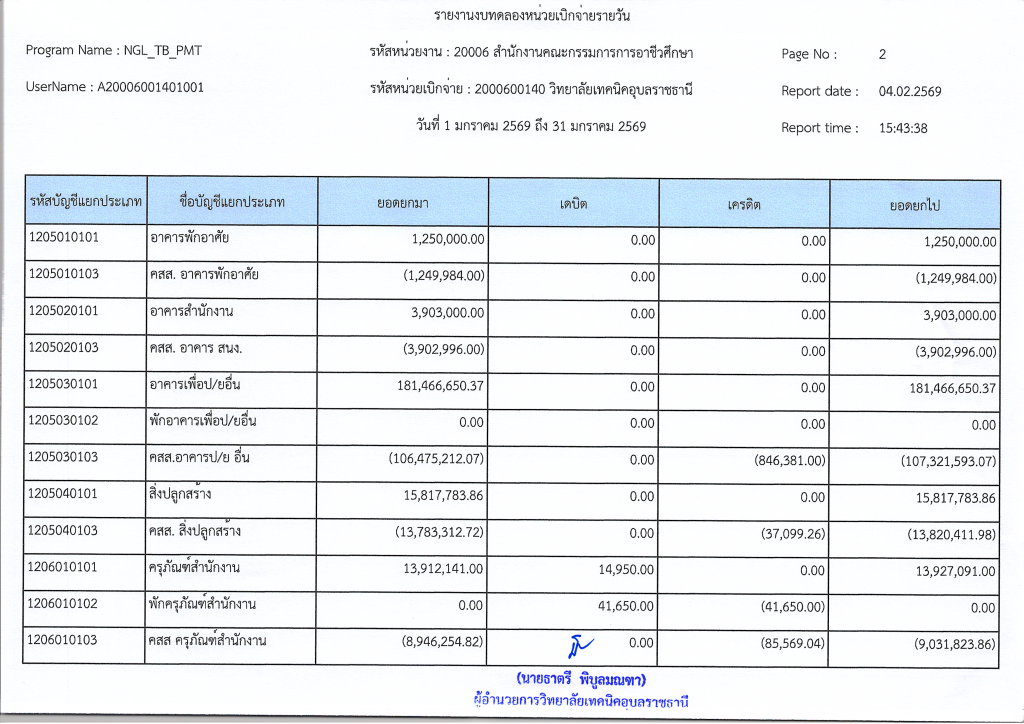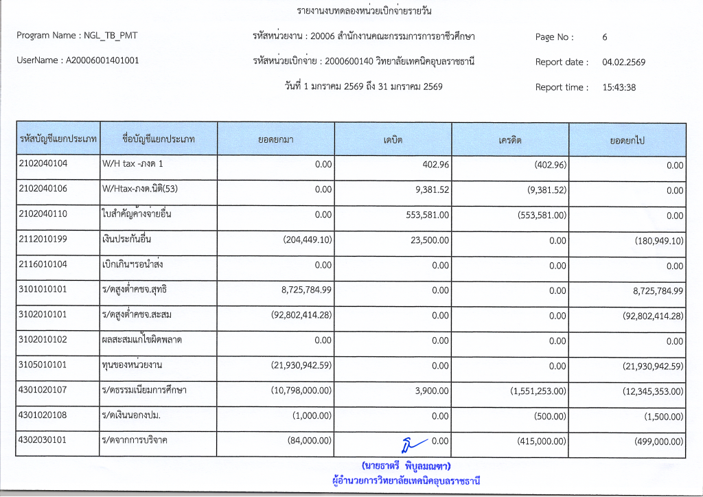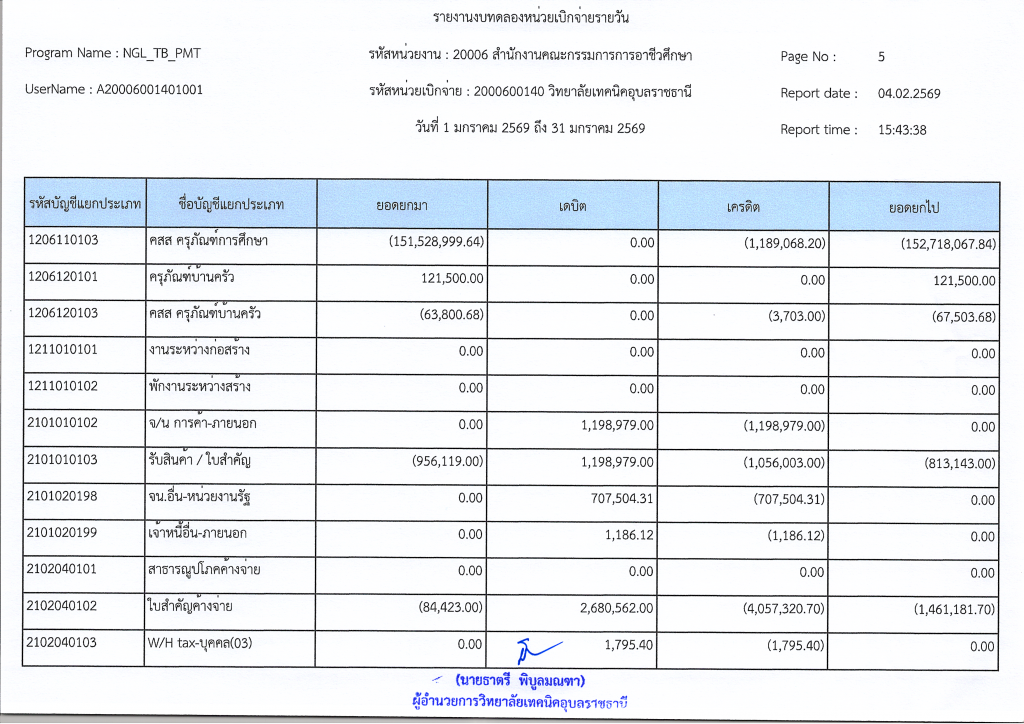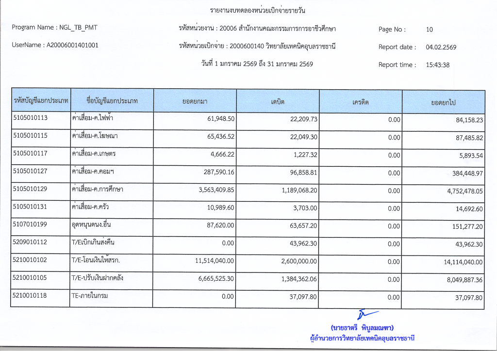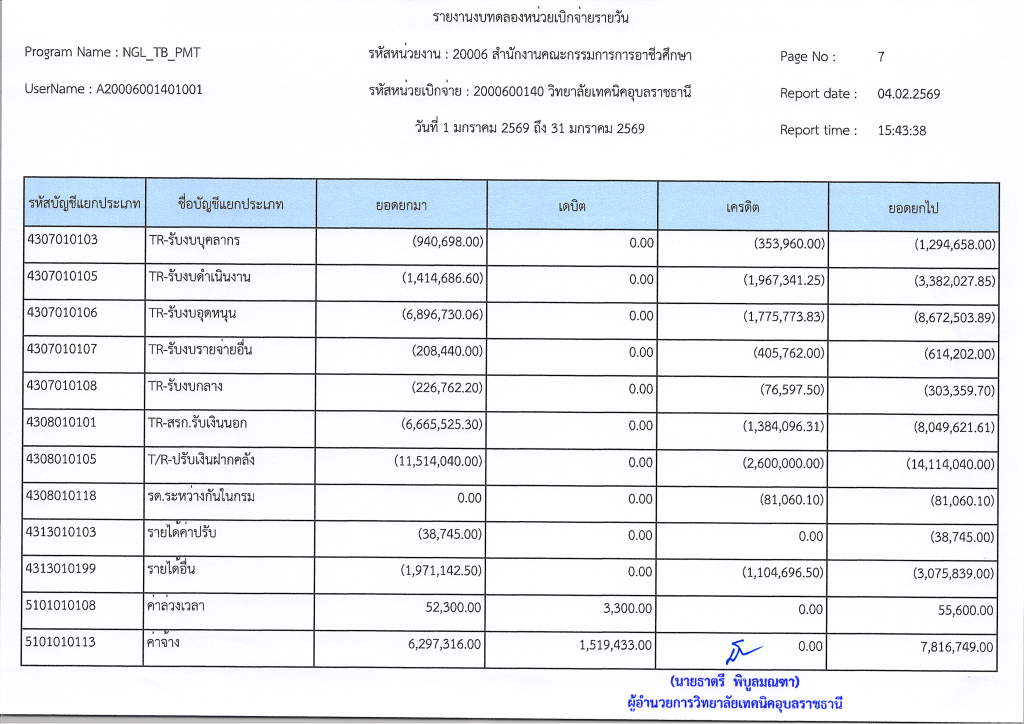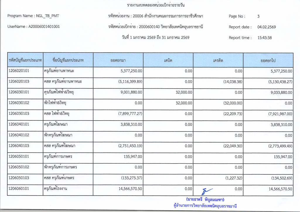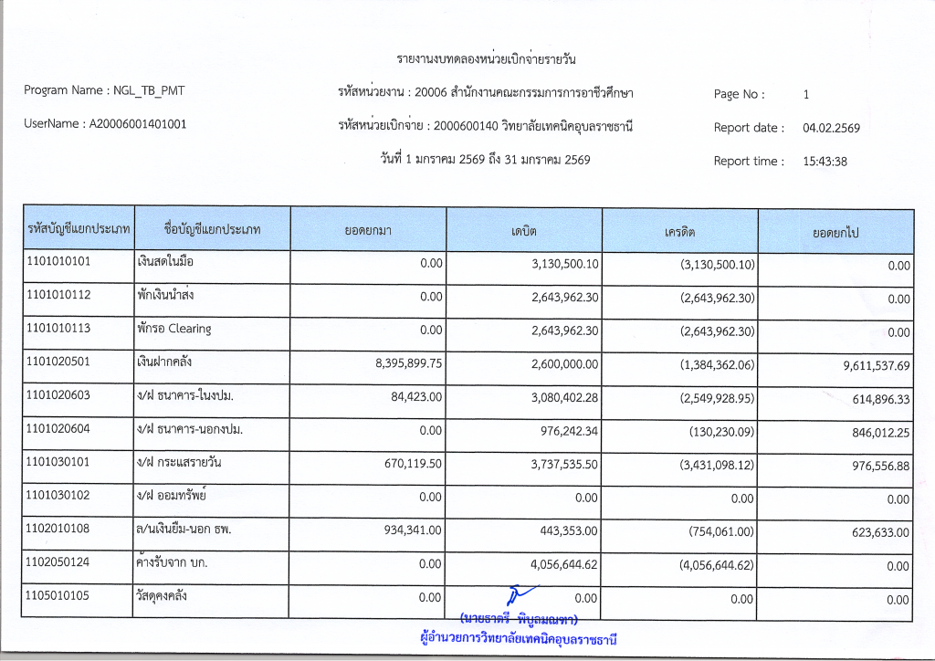 รายงานงบทดลองประจำเดือน มกราคม 2569